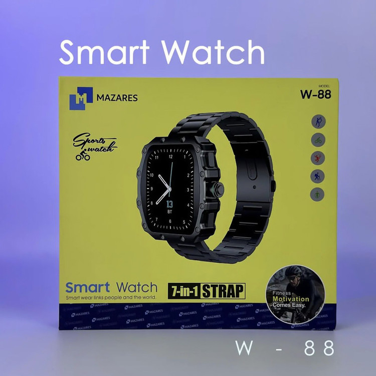 ساعت هوشمند W-88 یک نسخه جدید دیگری از سری W ساعت های هوشمند است که توجه بسیاری از مردم جهان را به خود جلب کرده است. این ساعت به شکل مستطیلی ساخته شده است و سایز آن 49 میلی متر میباشد. این ساعت دارای باتری قوی 160 میلی آمپر است. درون جعبه این ساعت 7 بند اضافه در رنگ بندی مختلف میباشد که یکی از مزیت های این مدل ساعت است. هم چنین این ساعت دارای کالری شمار، گام شمار و سیستم تخمین مسافت میباشد. این ساعت از چندین زبان پشتیبانی میکند و طرفداران خاص خودش را دارد.