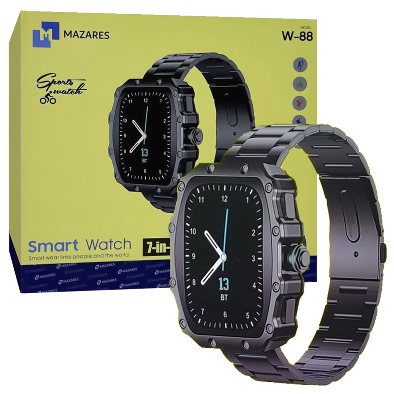 ساعت هوشمند W-88 یک نسخه جدید دیگری از سری W ساعت های هوشمند است که توجه بسیاری از مردم جهان را به خود جلب کرده است. این ساعت به شکل مستطیلی ساخته شده است و سایز آن 49 میلی متر میباشد. این ساعت دارای باتری قوی 160 میلی آمپر است. درون جعبه این ساعت 7 بند اضافه در رنگ بندی مختلف میباشد که یکی از مزیت های این مدل ساعت است. هم چنین این ساعت دارای کالری شمار، گام شمار و سیستم تخمین مسافت میباشد. این ساعت از چندین زبان پشتیبانی میکند و طرفداران خاص خودش را دارد.