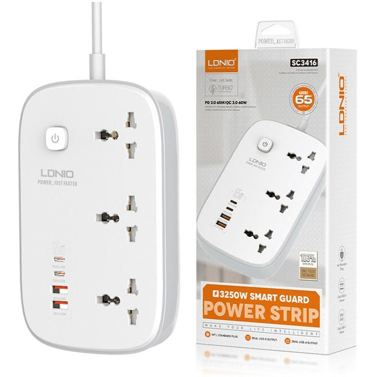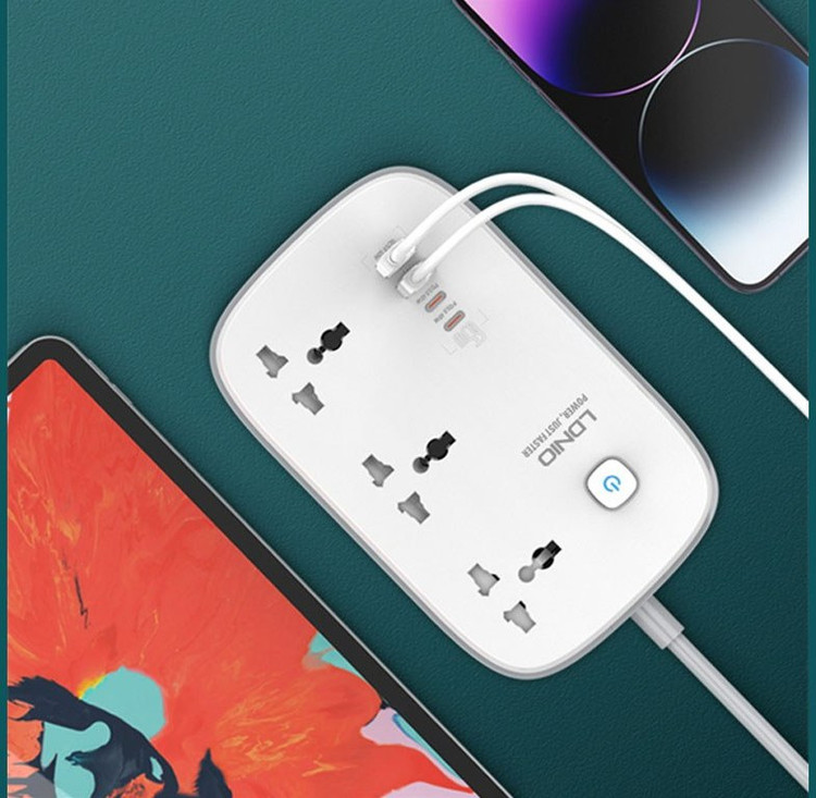 چندراهی برق الدینیو مدل SC3416 ظرفیت ۳۲۵۰ وات با ۳ سوکت و ۲ متر کابل